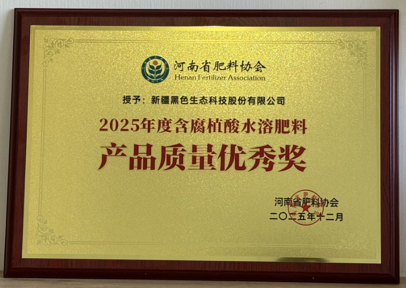 喜报!新疆黑色生态斩获2025年度含腐植酸水溶肥料产品质量优秀奖